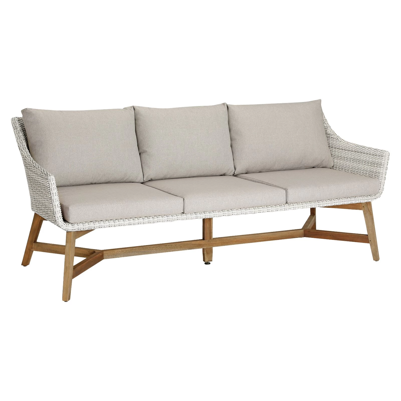 Diese Lounge Couch bietet 3 Personen bequem Platz. Durch die hohe, weit zurückgesetzte Rückenlehne und die formschönen, nach unten verlaufenden Armlehnen avanciert dieses Möbelstück bestimmt auch auf Ihrem Balkon, der Terrasse oder im Garten zum einladenden Blickfang. Die ergonomische Form der Lounge-Couch bietet einen hohen Sitzkomfort, das Fußkreuz sorgt für noch mehr Stabilität.