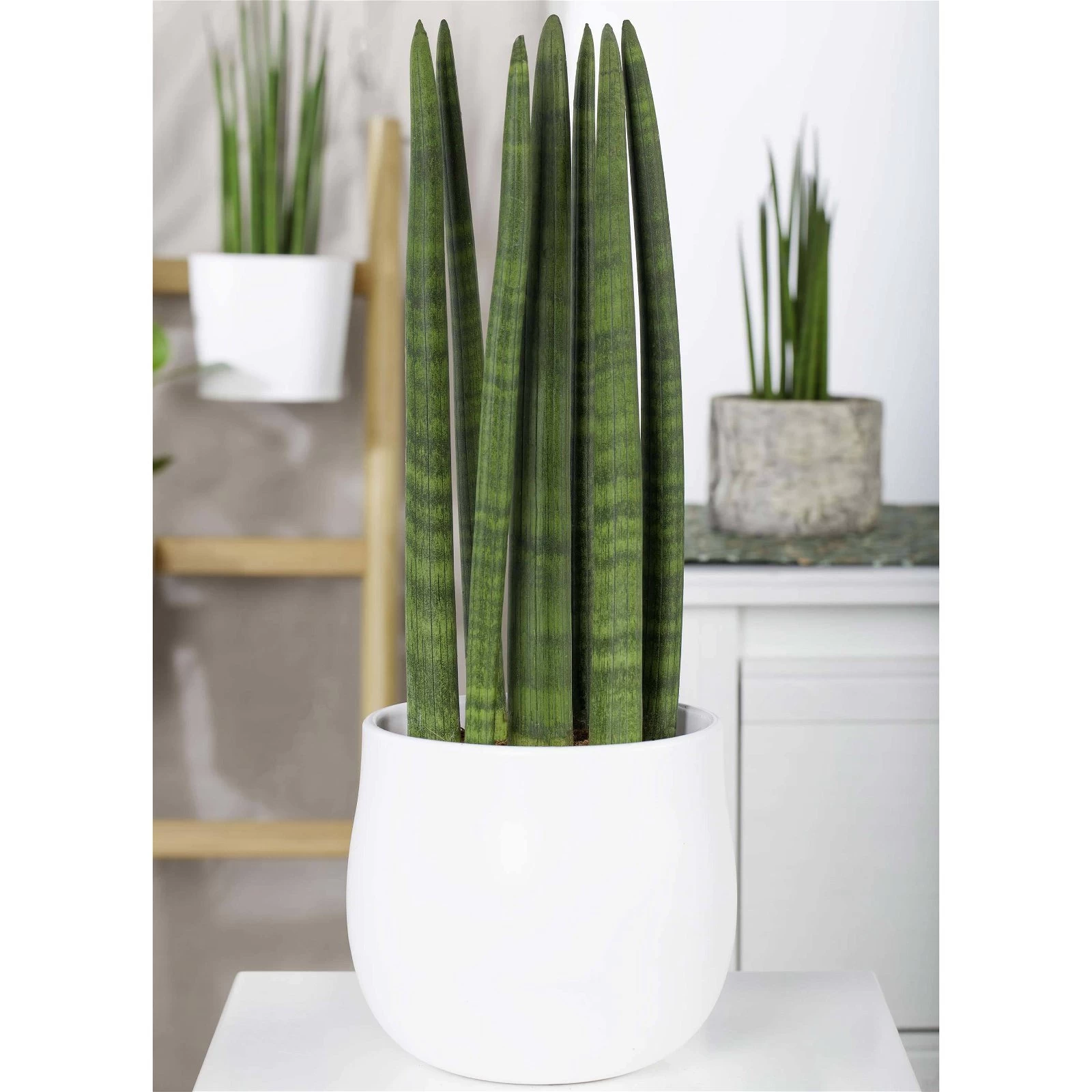 Die Sansevieria cylindrica ‚Straight‘ zeichnet sich durch ihren aufrechten Wuchs und dezente Blattmaserung aus. Diese Bogenhanf-Art gehört zu den beliebten Zimmerpflanzen und macht in einem Büro, im beheizten Wintergarten oder auch in Ihrem Wohnzimmer gleich gute Figur. Mit dem Bogenhanf kaufen Sie übrigens einen natürlichen Luftfilter für ein besseres Raumklima. Hinsichtlich der Pflege präsentiert sich die Sansevieria cylindrica ‚Straight‘ als sehr genügsam. Die Pflanze fühlt sich an einem sonnigen Standort recht wohl, verträgt aber auch Halbschatten und sogar Schatten. Als Substrat eignen sich lehmige und sandige Böden, die Sie nach Möglichkeit leicht angefeuchtet halten sollen. Zum Düngen dürfen Sie gerne ein Zimmerpflanzendünger nehmen. Im Sommer darf die Sansevieria cylindrica ‚Straight‘ gerne regen- und windgeschützt als Kübelpflanze ins Freie.