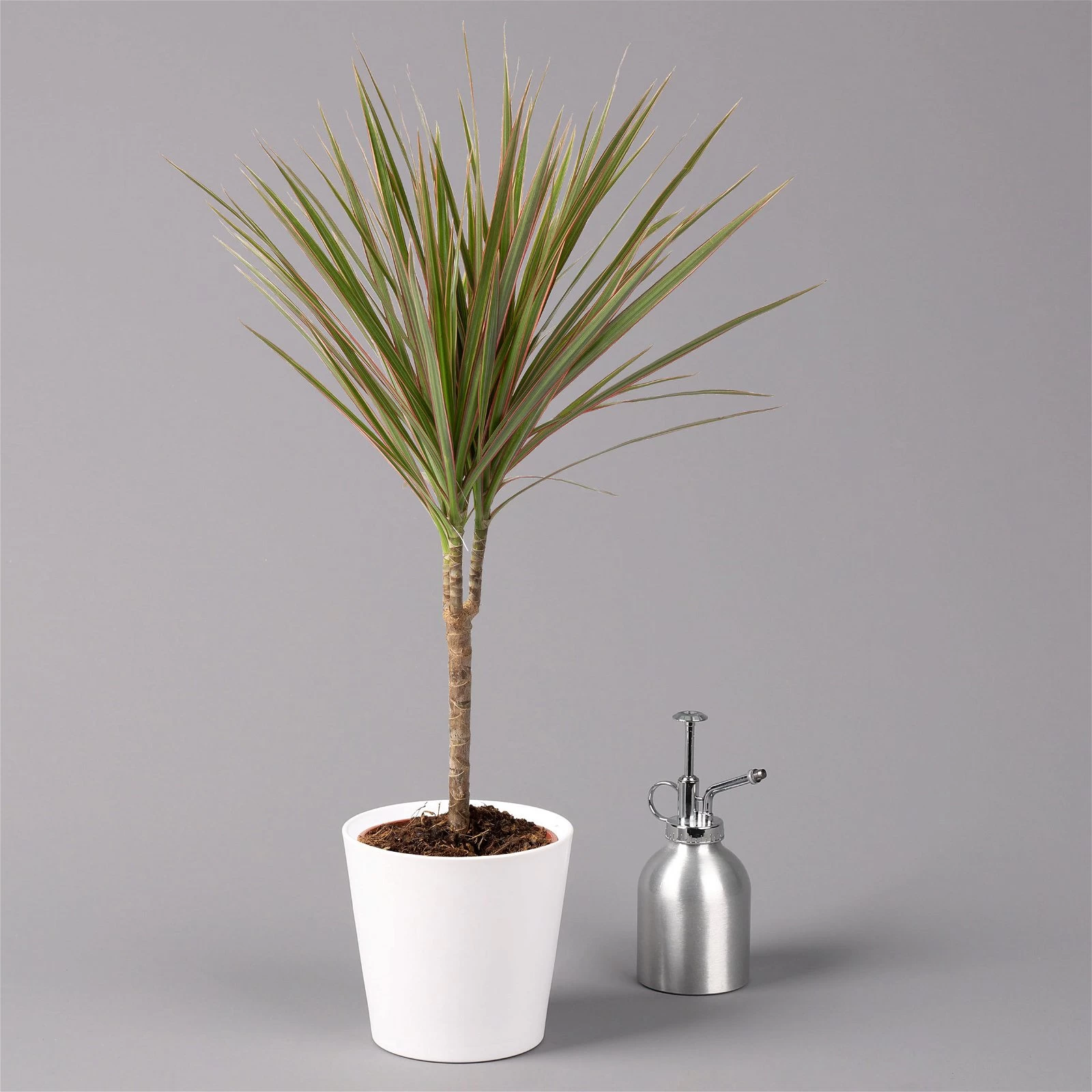 Er ist exotisch, auffällig gemustert und üppig geformt: Der Drachenbaum, auch Dracaena marginata ‚Bicolor‘ genannt. Diese Zimmerpflanze lässt sich an nahezu jeden Standort in Ihrer Wohnung oder im Büro aufstellen und schafft dadurch ein einzigartiges Ambiente. Nicht nur optisch wertet der Drachenbaum den Innenbereich auf, sondern filtert auch Schadstoffe aus der Luft. Fühlen Sie sich wie in der freien Natur und genießen Sie herrlich frische Luft! Die roten Streifen der schmalen Blätter sind zudem ein wahrer Hingucker. Nicht umsonst verdient diese Pflanze ihren Namen, denn das Muster erinnert an ein beeindruckendes Fabelwesen der chinesischen Kultur. Um diese Struktur zu erhalten, sollten Sie regelmäßig ein wenig Grünpflanzendünger zum Substrat geben. Tipp: Verfärben sich die Blätter und weisen gelbe Flecken auf, sollten Sie die Wasserzufuhr etwas reduzieren.