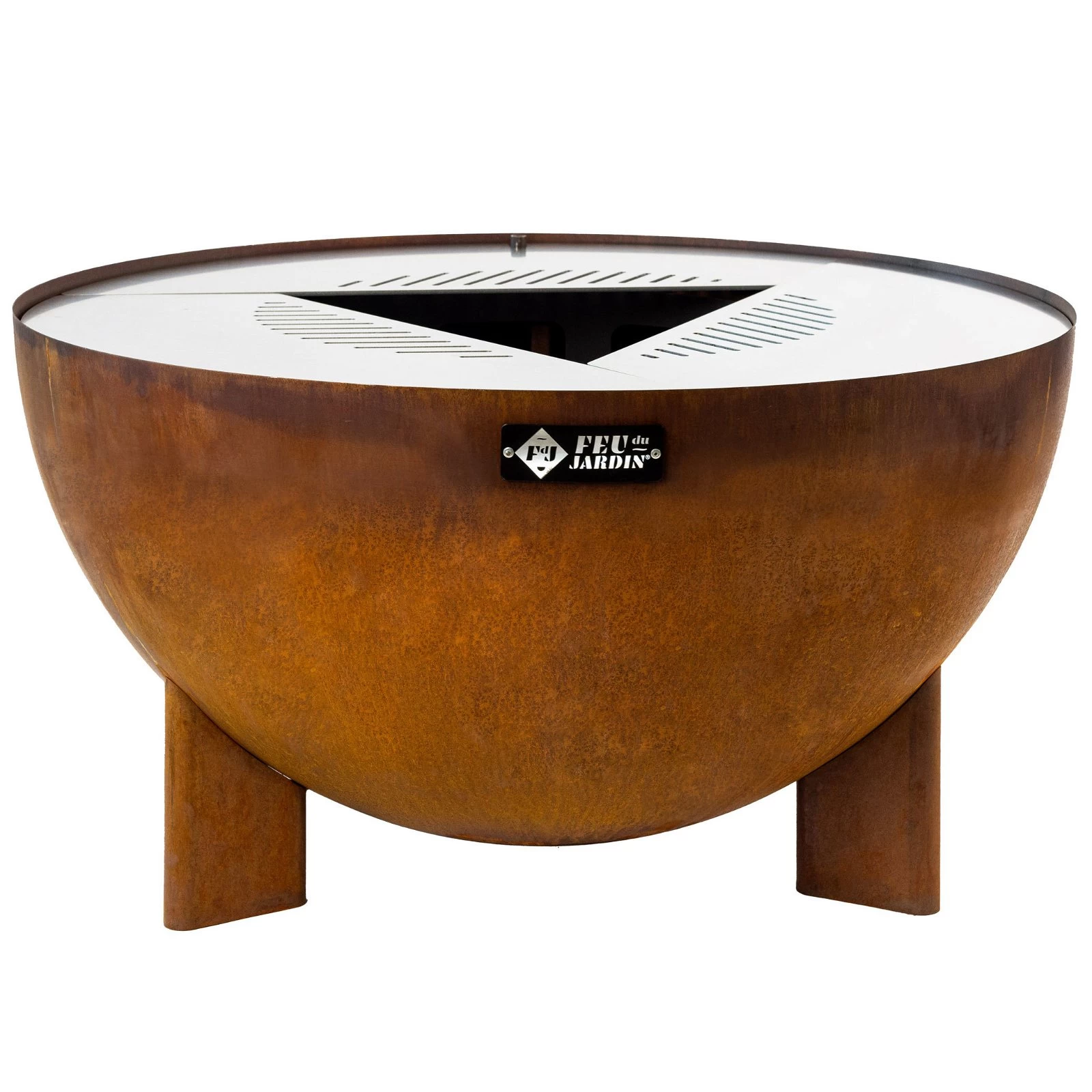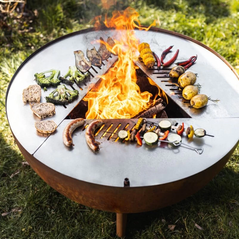 Dank eines funktionellen, herausnehmbaren Feuerkorbs ist die Feuerstelle TRIA von Feu du Jardin besonders pflegeleicht. Die Feuerschale in Rostoptik überzeugt durch eine klare Designlösung und macht sich ausgezeichnet in jedem Gartenkontext. Auf Wunsch können Sie die Feuerschale TRIA auch zum Grillen oder Kochen verwenden.