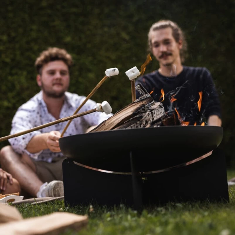 Lassen Sie auf Ihrer Terrasse oder im Garten eine feurig-magische Atmosphäre entstehen und sich von dem Tanz der Feuerzungen verführen. Die Feuerstelle X 50 von Feu du Jardin in elegantem Schwarz überzeugt durch eine wetterfeste und hitzeresistente Beschichtung. Das zweiteilige Untergestell können Sie auf jedem Untergrund stabil platzieren.