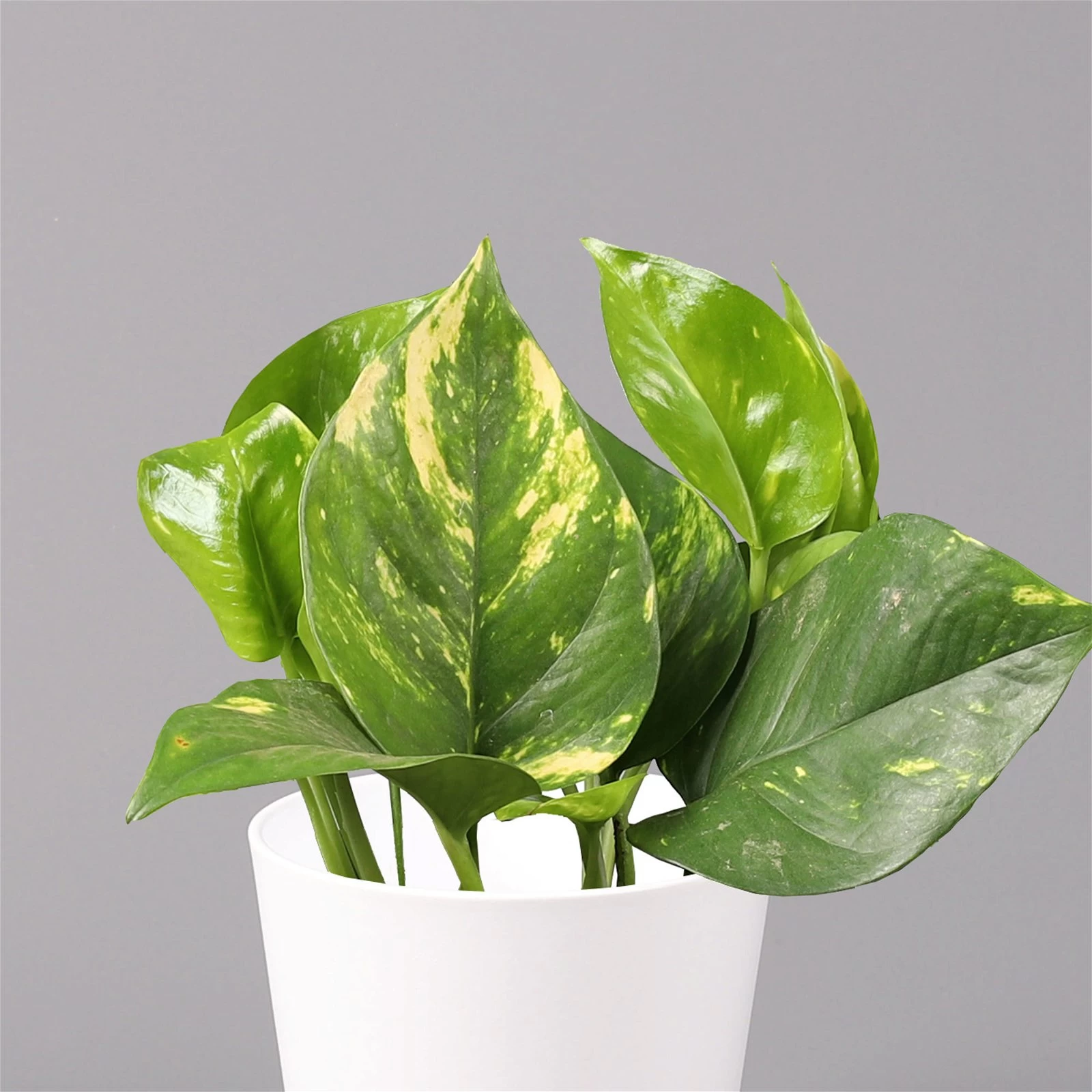 Die Efeutute, Epipremnum pinnatum (syn. Epipremnum aureum), ist eine anspruchslose und zugleich dekorative kletternde oder hängende Blattschmuckpflanze. Die Efeutute ist eine nahezu perfekte Zimmerpflanze für Anfänger oder fürs Büro, die etliche Fehler wie seltenes Gießen oder nur sporadisches Düngen verzeiht. Mit zu häufigen Wassergaben können Sie dagegen der Efeutute erhebliche Schäden zufügen. An einem hellen absonnigen oder auch halbschattigen bis schattigen Standort fühlt sich Ihre Pflanze sofort wohl. Zugluft und direkte Sonneneinstrahlung sind dagegen zu vermeiden. Sogar im Winter dürfen die Lufttemperaturen nicht dauerhaft unter 16 Grad sinken. Die Epipremnum pinnatum gehört zu den beliebten Raumklimapflanzen und entzieht der Luft Benzole, Nicotin und weitere Schadstoffe. Bitte stellen Sie Ihre Efeutute außerhalb der Reichweite von Kindern oder Hautieren auf, da der Pflanzensaft giftig ist.