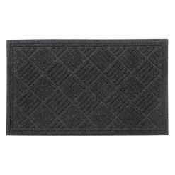 Die Fussmatte ‚Parquet‘ in Dunkelgrau hat die Maße 45 x 75 cm. Sie ist ideal für nachhaltig lebende Menschen, da sie aus recycelten PET Flaschen und Reifen gefertigt wurde. Dank der hohen UV-Beständigkeit haben Sie lange Freude an der abriebfesten und wasserabsorbierenden Fussmatte. Sie ist sehr pflegeleicht.