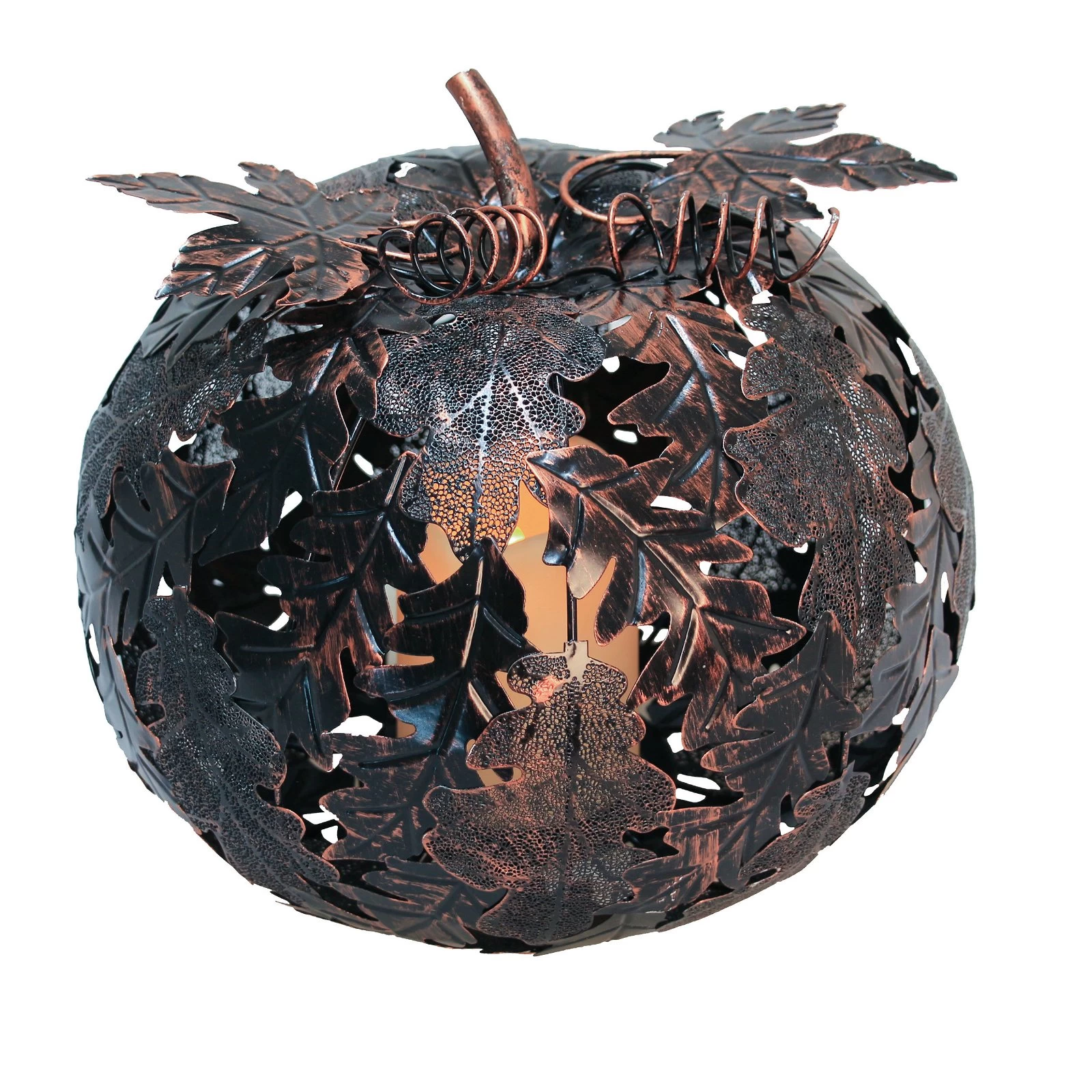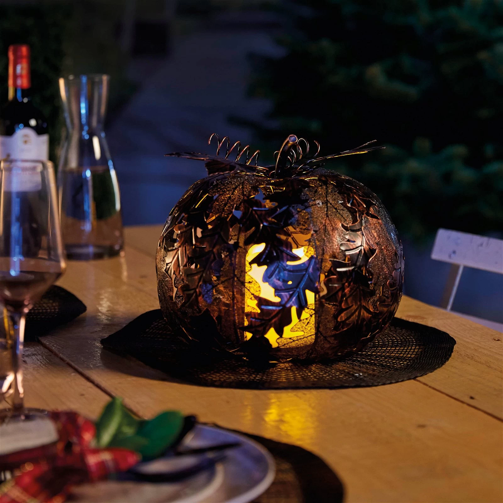 Gartenleuchte Kürbis Mit Blatt, Kupfer, Ca. 23,5 X 28 Cm