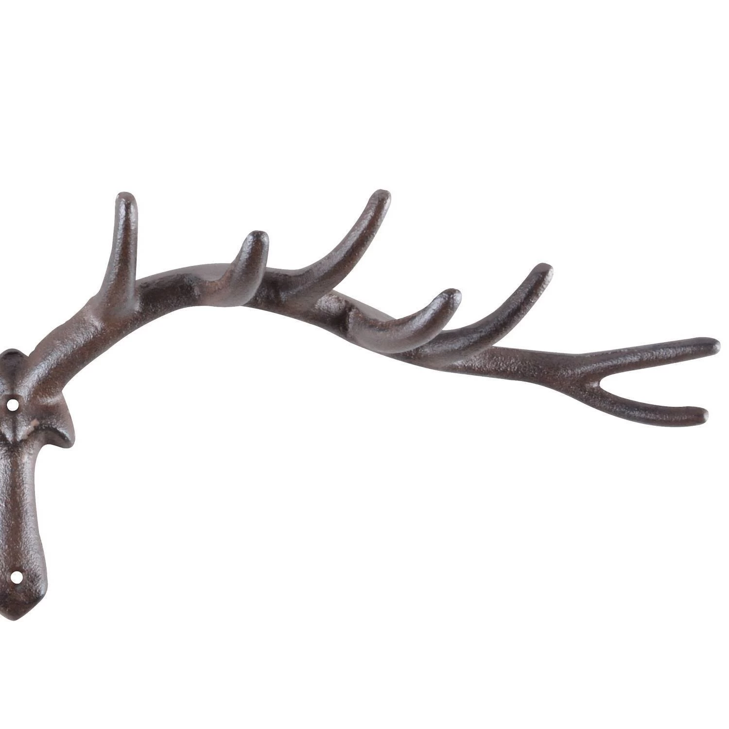 Verleihen Sie Ihrem Zuhause mit dieser dekorativen Garderobe in Form eines mächtigen Hirschgeweihs ein romantisch-nostalgisches Landhausflair. Der Garderobenhaken ‚Hirschgeweih‘ ist aus stabilem Gusseisen gefertigt und bietet genug Platz für Ihre Jacken, Mützen und Schals. Der Haken ist einfach anzubringen und hält hohen Belastungen problemlos stand.