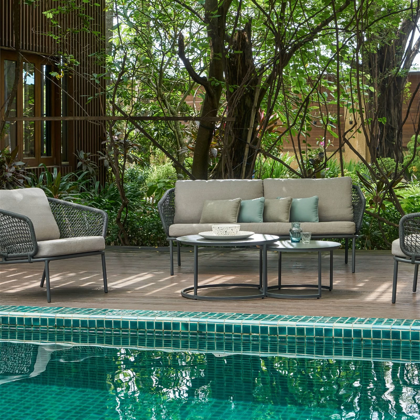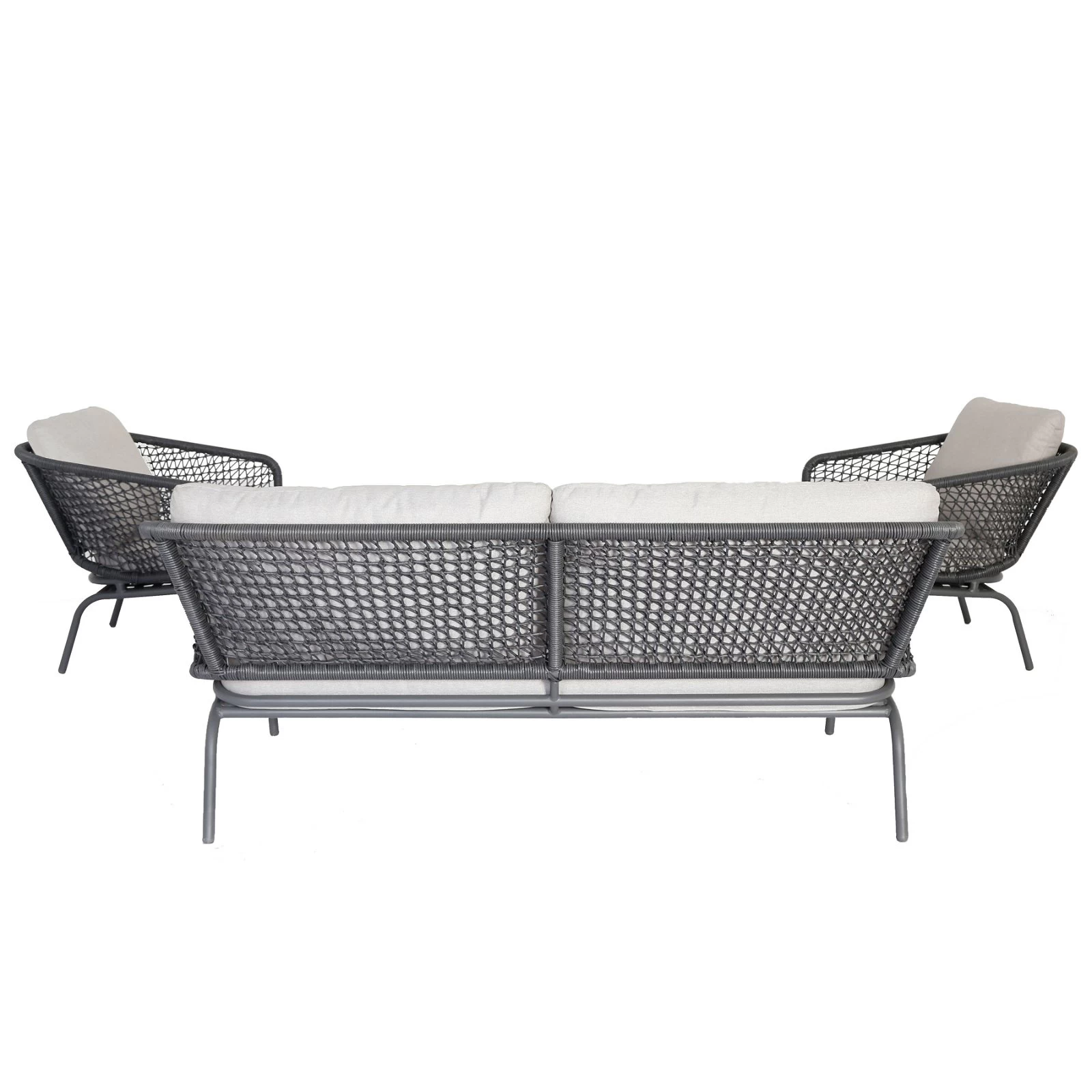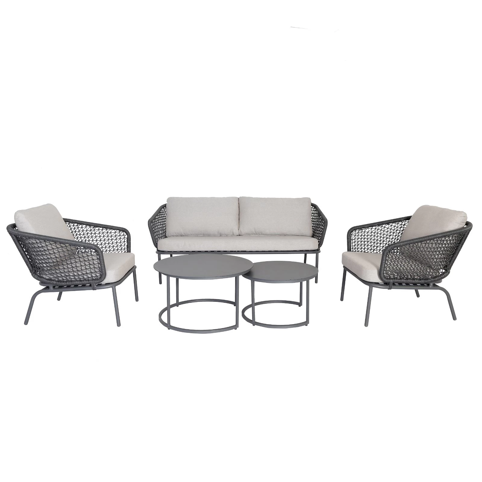 Mit dem Lounge-Set ‚Eagle‘ gestalten Sie Ihre Outdoor-Sitzlandschaft auf eine äußerst komfortable und zudem stilvolle Art. Dieses fünfteilige Set präsentiert sich in der modischen Farbe Anthrazit und überzeugt sowohl mit witterungsbeständigen, pflegeleichten Materialien als auch mit ergonomisch gepolsterten Auflagen.