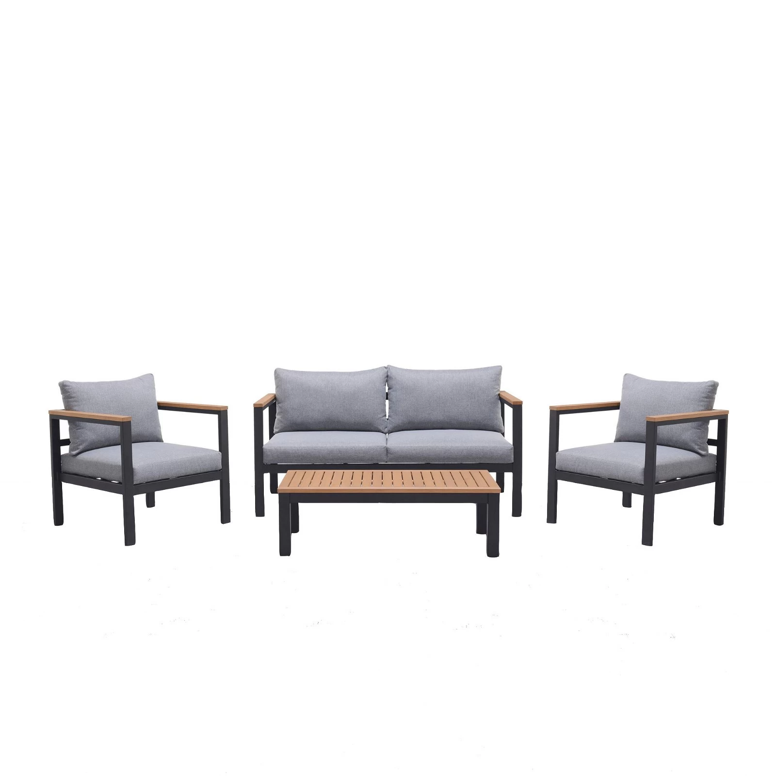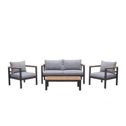 Mit dem modernen Loungeset ‚Kingsbury‘ von ScanCom werten Sie Ihre Outdoorlandschaft auf und erhöhen merklich den Komfortfaktor. Dieses stilvoll gestaltete, vierteilige Loungeset eignet sich hervorragend für entspannte Stunden auf der Terrasse und ist dank der intelligenten Materialauswahl für Draußeneinsatz genau die richtige Wahl.