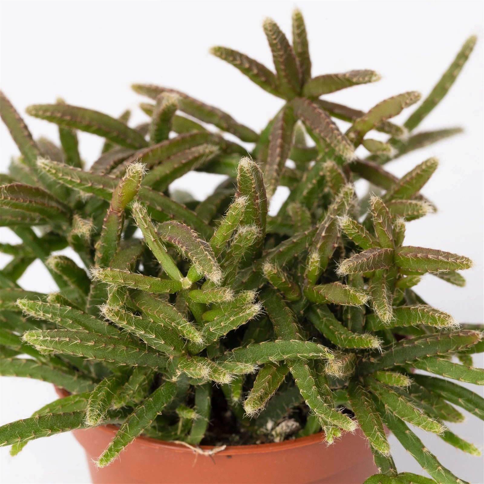 Falls Sie nach einer exotischen Begrünung für Ihr Zuhause suchen, dann bietet sich unser Mini-Korallenkaktus-Set (Rhipsalis) in formschönen Dekotöpfen mit dem abstrakten Wuchs geradezu an. Diese kaktusartigen Zimmerpflanzen sind ausgesprochen pflegeleicht und zeigen eine hohe Toleranz in Hinblick auf die Wassergaben. Lassen Sie das Substrat gründlich antrocknen, bevor Sie den Korallenkaktus wieder gießen. Eine gute Drainage ist für die Pflanzengesundheit entscheidend, daher eignet sich Kakteenerde für die Pflege der Pflanzen am besten. Die Pflanzen brauchen das ganze Jahr über konstante Wärme, sodass die Raumtemperaturen nicht unter 20 Grad Celsius fallen dürfen. In der kalten Jahreszeit sollte zusätzlich auf einen Standort abseits von trockener Heizungsluft geachtet werden.