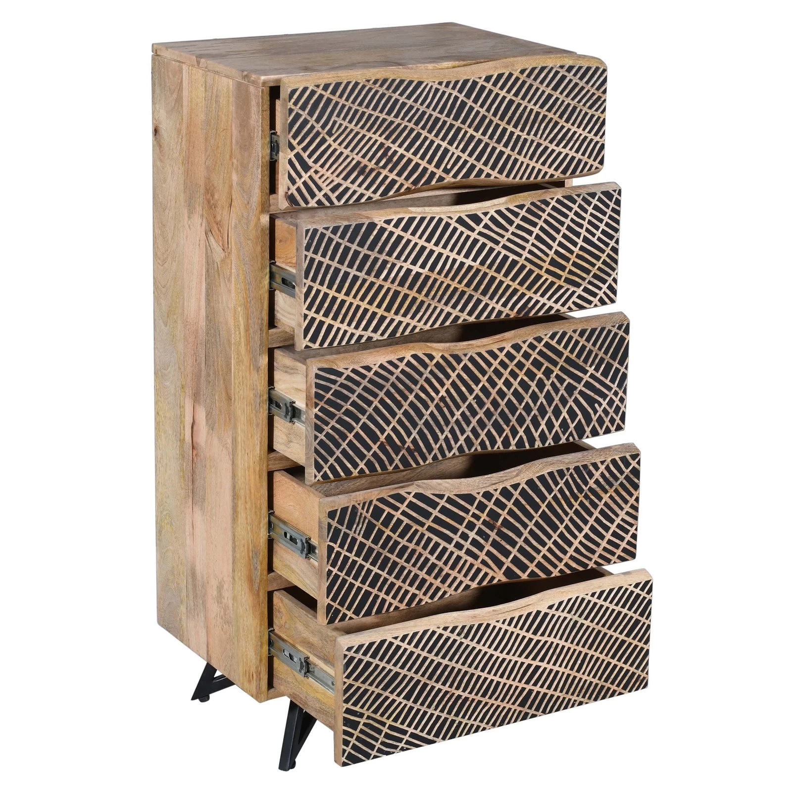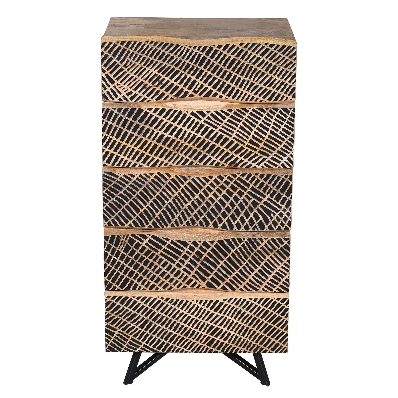 In ihren fünf Schubladen bietet die Kommode aus der Serie NEPTUN von Wolf Möbel reichlich Stauraum für kleine und große Dinge. Jede Kommode NEPTUN entsteht in detailreicher Handarbeit, wobei die originelle Maserung von exotischem Mangoholz optimal zur Geltung gebracht wird. Eine Besonderheit des Möbelstücks ist die effektvolle Oberflächenstruktur – eine Hommage an das aquatische Element.