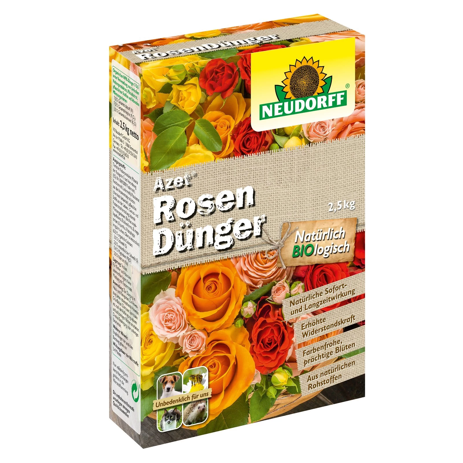 Neudorff Azet® Rosendünger ist ein organischer NPK-Dünger, der speziell auf die Bedürfnisse von Rosen abgestimmt ist. Auch Stauden und einjährige Blütenpflanzen werden mit diesem Dünger zuverlässig mit allen wichtigen Nährstoffen versorgt. Zudem wird eine üppige Blütenpracht Ihrer Rosen, Stauden und einjährigen Blütenpflanzen gefördert.