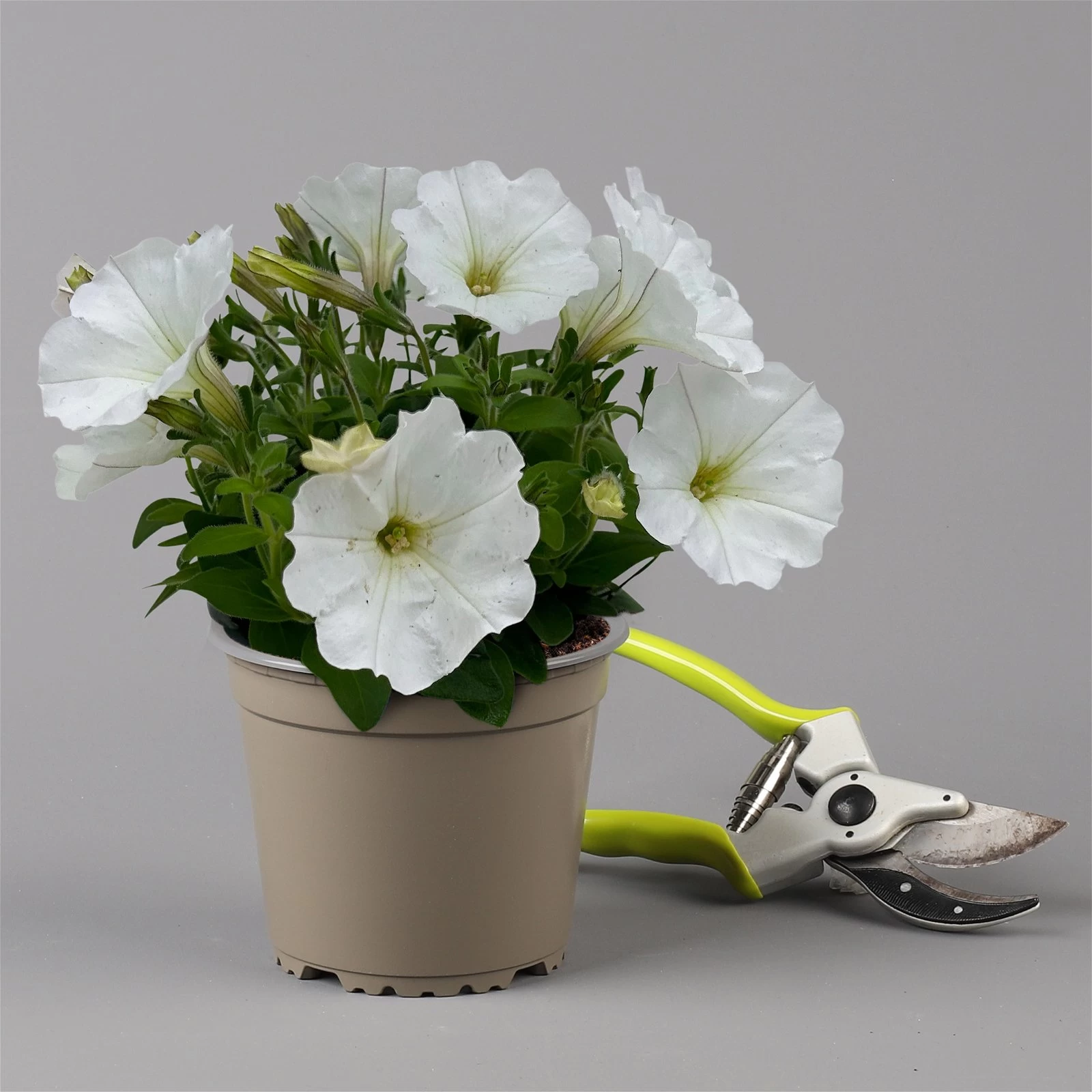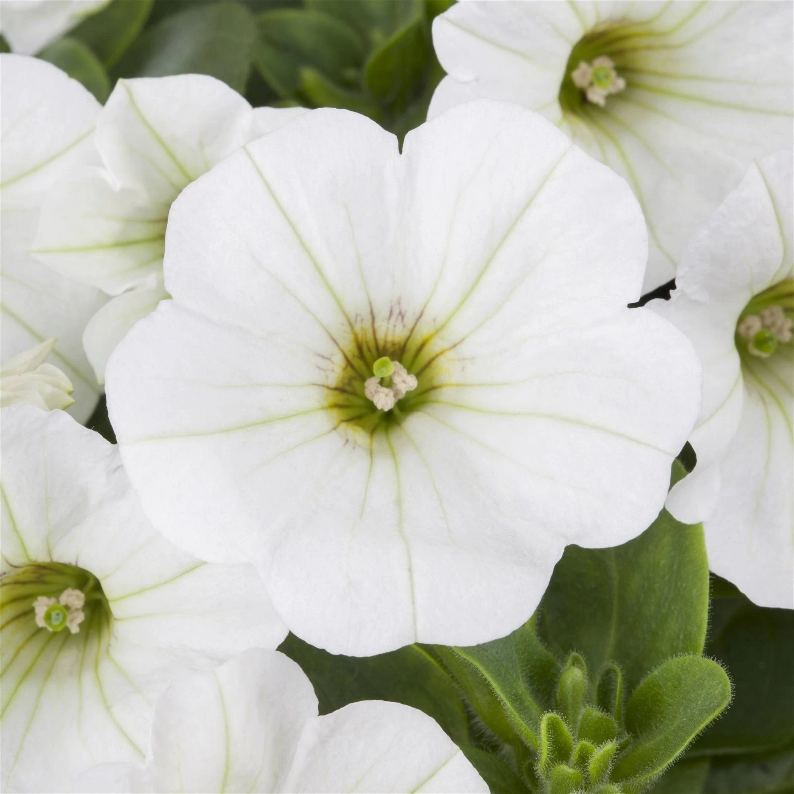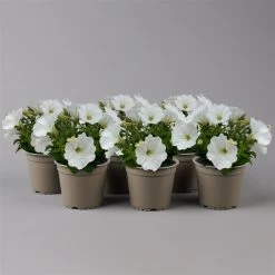 Die großen, trompetenförmigen, weißen Blüten, bringen von April bis Oktober Abwechslung in Ihr Zuhause. Die Petunie blüht so üppig, dass die zahlreichen Blüten das Blattwerk optisch fast vollständig überdecken.