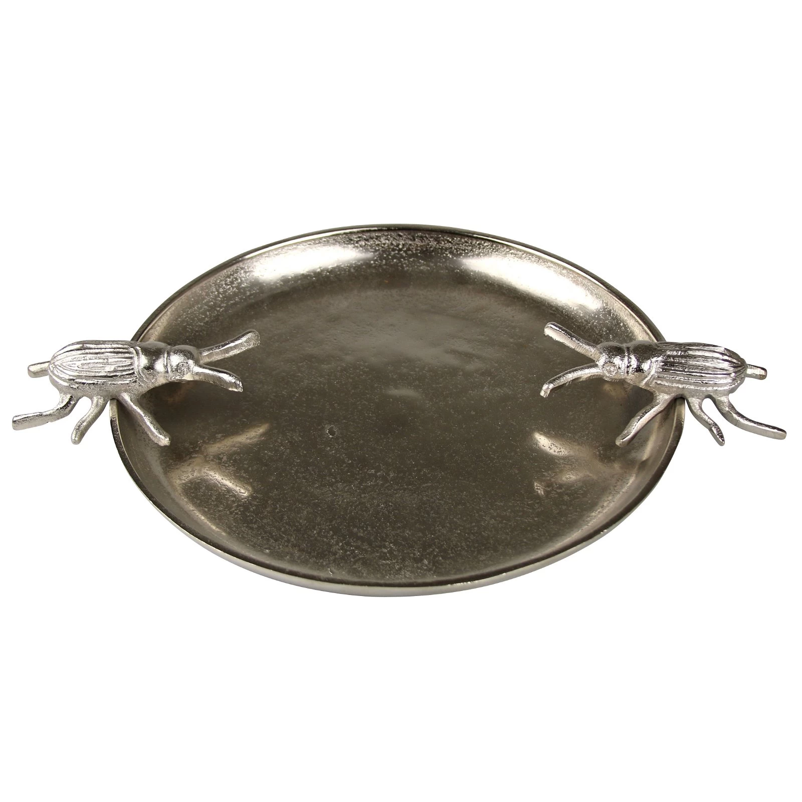 Die besondere Platte aus Aluminium ist durch die zwei sich gegenüber sitzenden Käfern eine echte Besonderheit. Die Platte sowie die Käfer sind in modernem und zeitlosem Silber gehalten. Mit diesem Artikel lassen sich dekorative Arrangements erstellen. Sie können sich kreativ ausleben und diese Aluminium-Platte mit weiteren Deko-Elementen kombinieren. Auch als Ablage für Schlüssel oder Briefe im Flur geeignet.