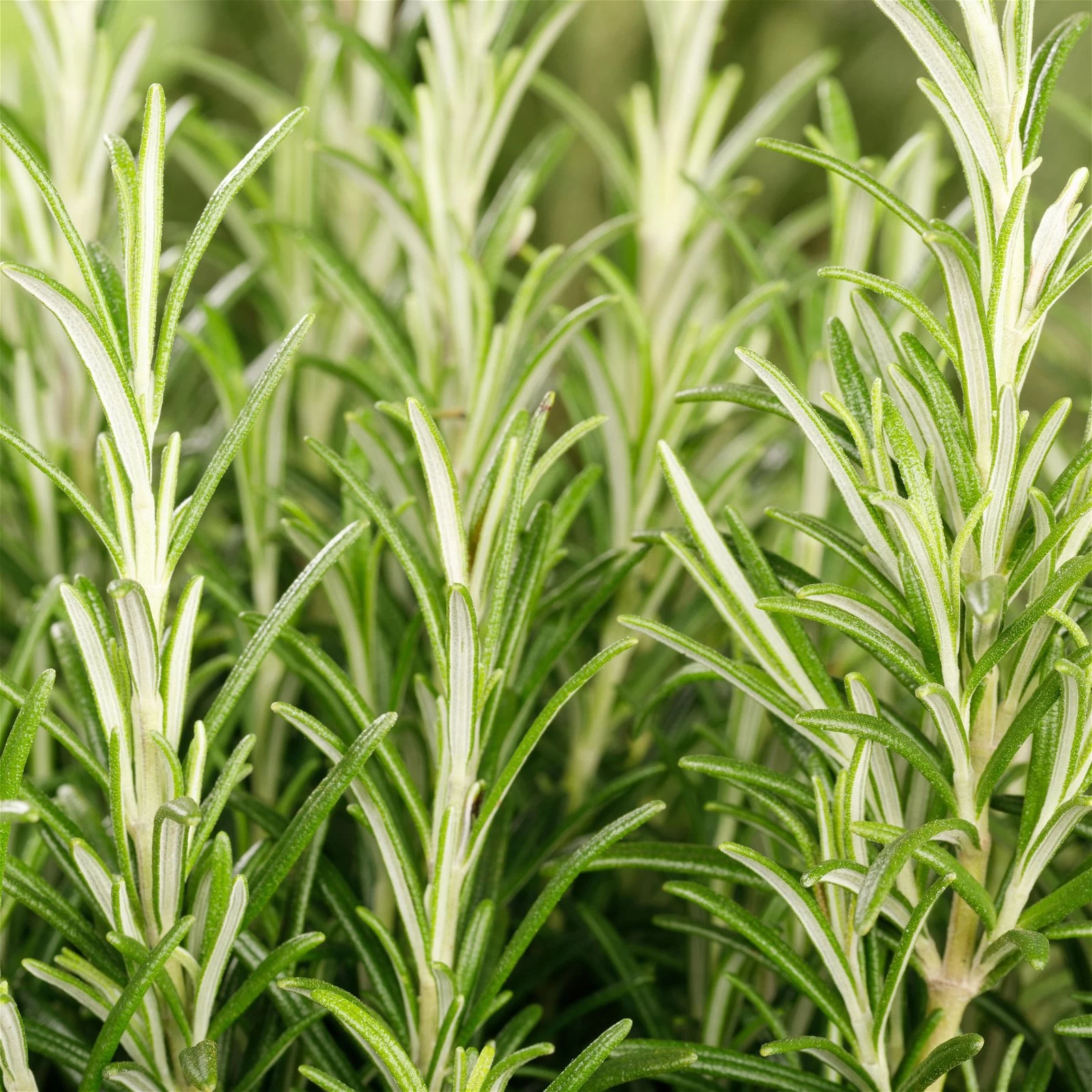Die festen, nadelförmigen Blätter des Rosmarins (Salvia rosmarinus syn. Rosmarinus officinalis) begeistern mit grün-silbriger Farbe. Der Rosmarin wächst aufrecht und buschig. Diese robuste & pflegeleichte mediterrane Pflanze kann eine Wuchshöhe von bis zu 100 cm erreichen.