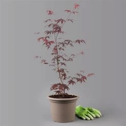 Der Rote Fächerahorn ‚Bloodgood‘ ist ein malerisch, aufrechter Strauch mit breiter Krone. Der herrliche Ahorn erreicht eine Höhe und Breite von 2 bis 4 m und schmückt mit seinem roten Laub jeden Garten. Gleichermaßen schmückt er im Kübel jede Terrasse und Balkon. Das dekorative, fächerförmige, rote Blatt nimmt im Herbst eine scharlachrote Farbe an. Die Pflanze fühlt sich an einem sonnigen bis halbschattigen Standort wohl. In zu schattigen Lagen vergrünt das Blatt etwas. Lange Triebe müssen für einen dichten Wuchs im März geschnitten werden.