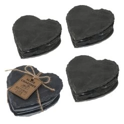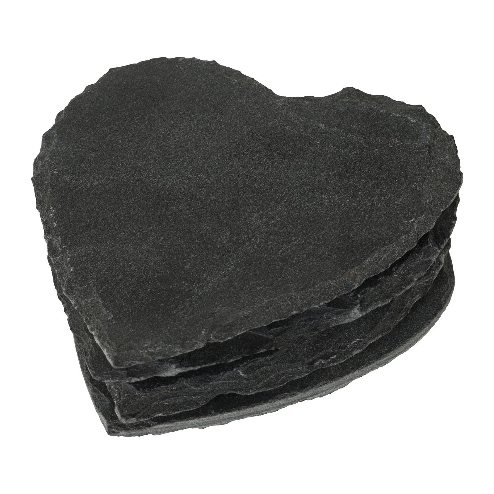 Schiefer-Untersetzer, 4x4er-Set, Herzform, Anthrazit, 10 X 10 X 1 Cm
