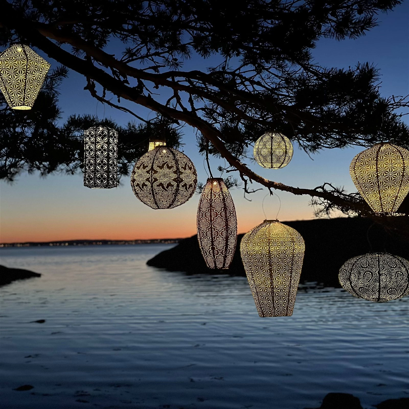 Solarlaterne ‚Cylinder 18 Mandela‘, Petrol, Ø 18 X 33 Cm