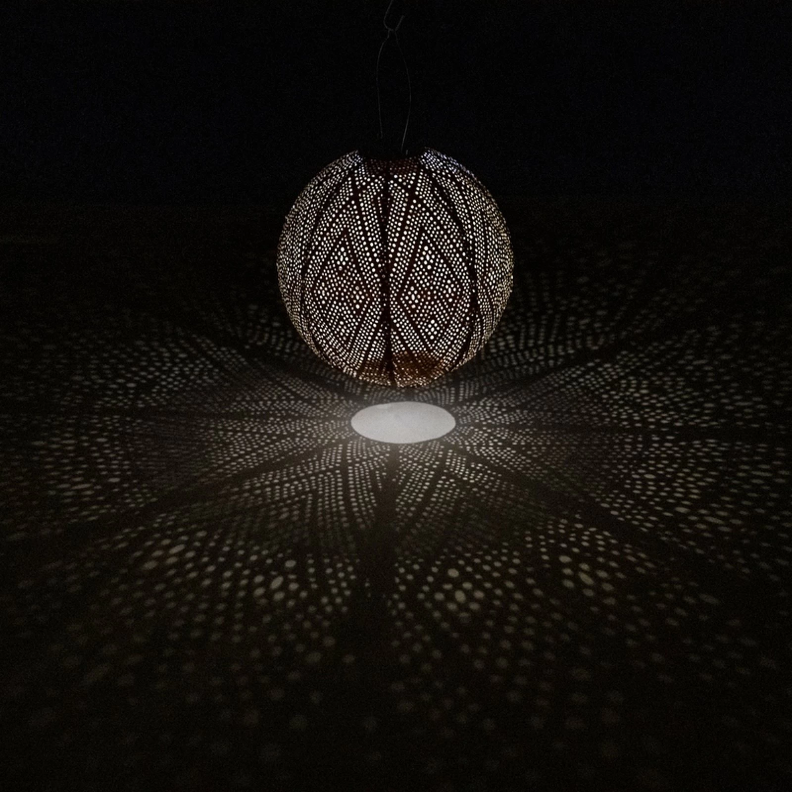 Bei einer Gartenparty spendet diese helltaupeene Solarlaterne ‚Round 30‘ ein elegantes Licht. Es entstehen schöne Muster, die einen zusätzlichen Charme versprühen. Die Laterne ist zusammenfaltbar und deshalb auch bestens als mobile Dekoration geeignet. Sie besteht aus Tyvek R1443 PU, 43 g/qm und hat die Größe 30 x 28,9 cm.