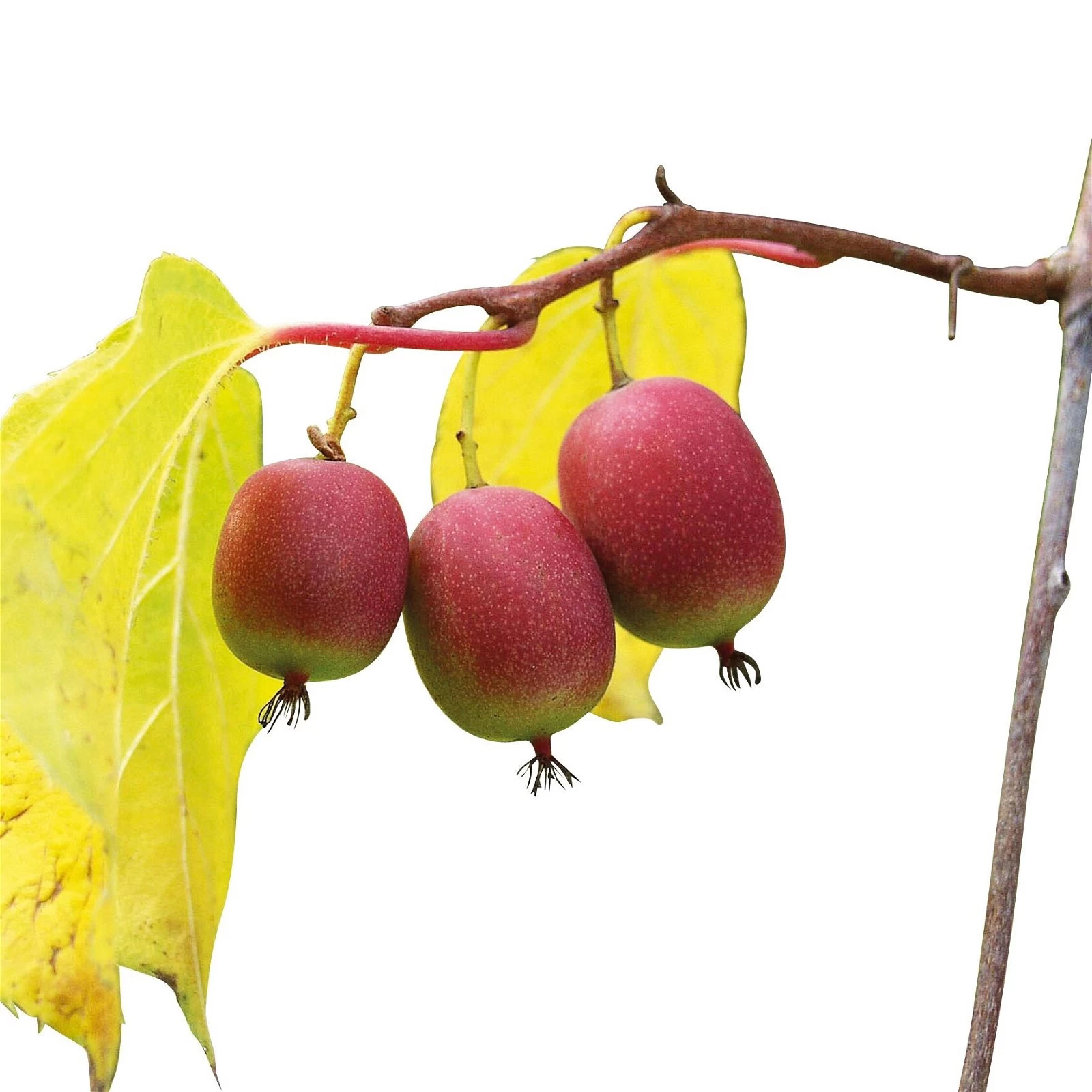 Die Minikiwi ‚Kens Red‘ ist eine rein weibliche Fruchtsorte, die zur Befruchtung eine männliche Sorte benötigt.
